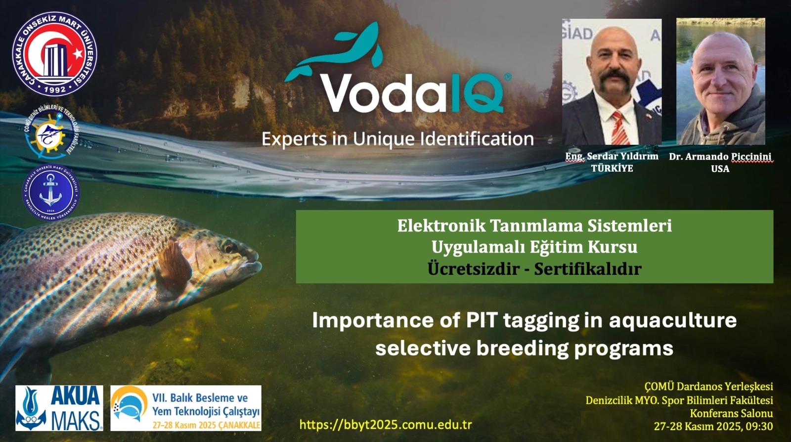 Türkiye, Körfez Bölgesi, Japonya ve Asya VodaIQ Elektronik Tanımlama Sistemleri distribütörü *Akuamaks Su Ürünleri* sponsorluğunda, *Elektronik Tanımlama Sistemleri* Uygulamalı Eğitim kursu çalıştay porgramında yer almaktadır.